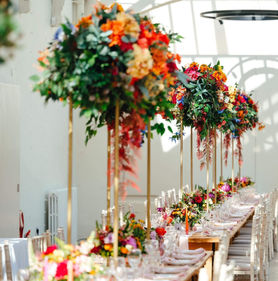 The perfect choice if you're looking for a statement piece to enhance your event. Its bright colours will catch your guests' eyes and create a festival atmosphere. Measuring five feet long, it provides impact and with its botanic garden feel, your special occasion will be transformed into an unforgettable moment for all.